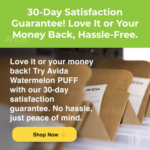 Crack open summer in an instant with Avida’s Watermelon CBD Vape Pen. This isn’t just a vape – it’s your personal sunshine, bottled and ready to refresh.