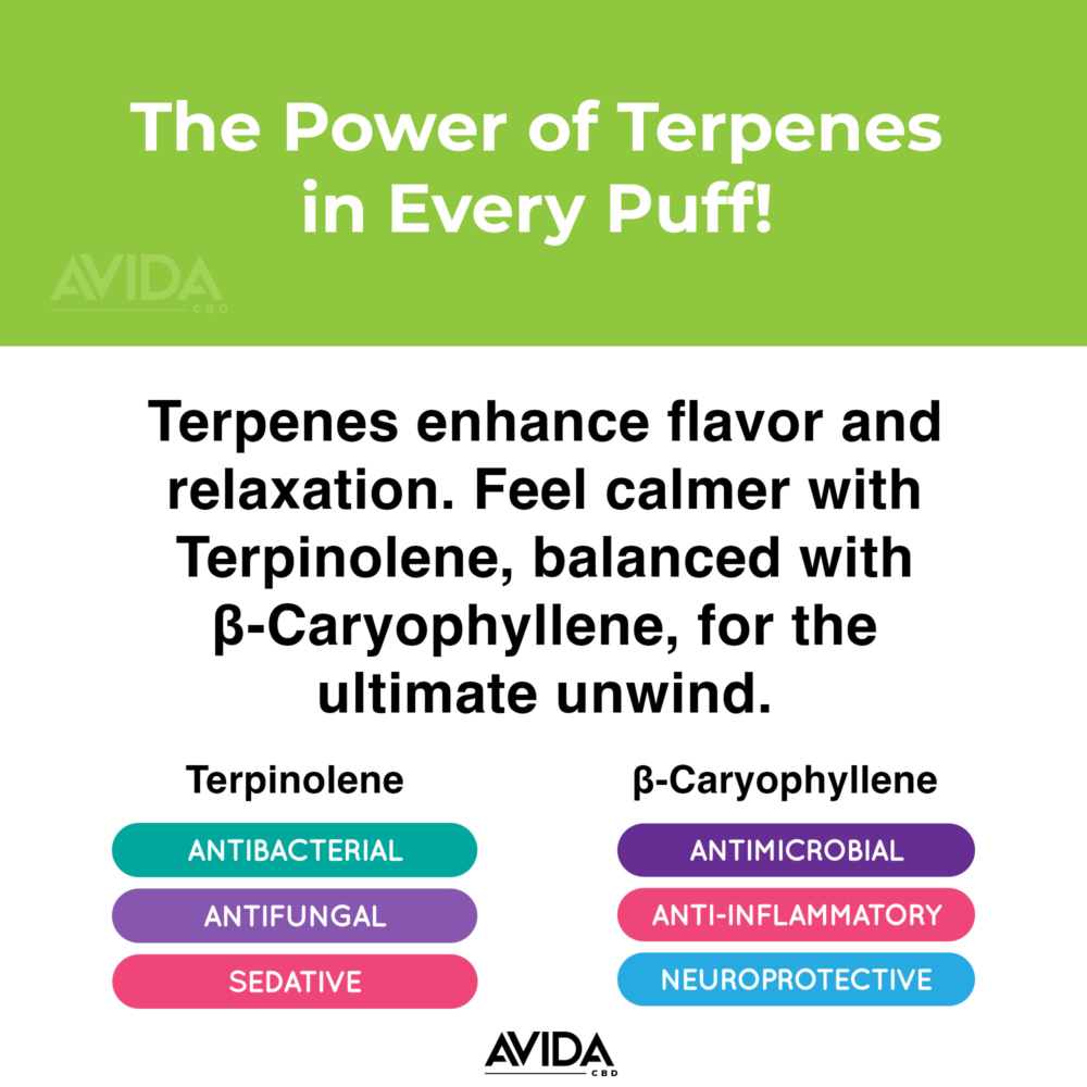 Our Watermelon blend isn’t just about mouthwatering taste. These terpenes are your natural wellness companions: